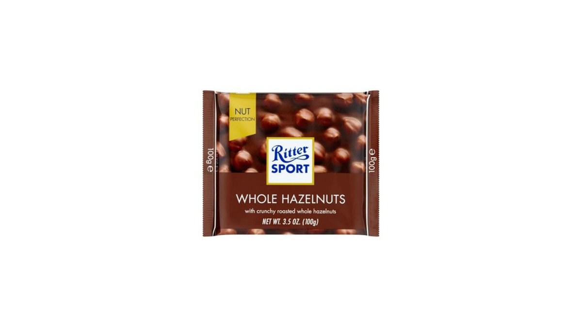 RITTER SPORT რძიანი შოკოლადი მთლიანი თხილით-100გ/4000417700001