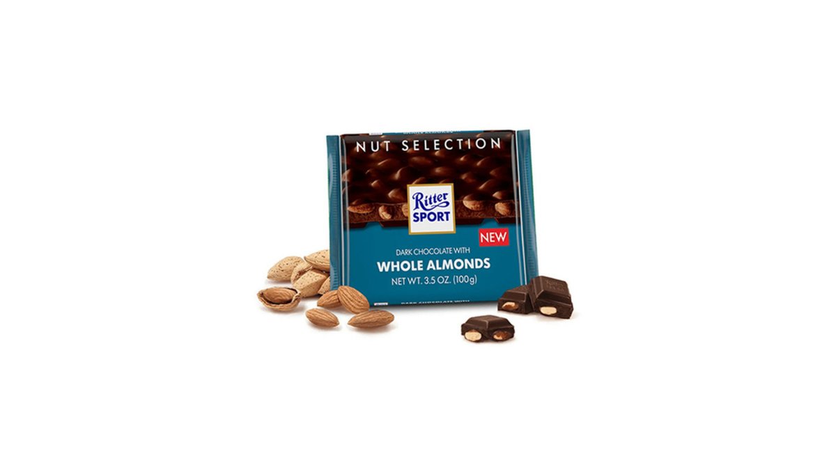 RITTER SPORT შავი შოკოლადის ფილა მთლინი ნუშით-100გ/4000417708007