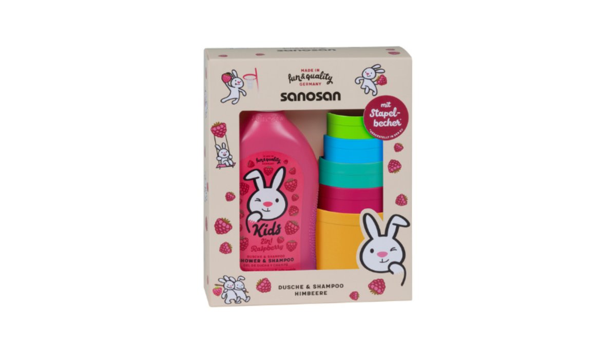 სანოსანი - სასაჩუქრე ნაკრები შამპუნი და აბაზანის გელი ჟოლოს არომატით 400მლ +ჭიქა 3252