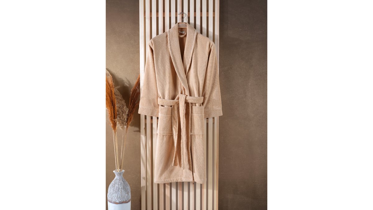 ხალათი - PETRAN SHAWL COLLAR MICROCOTTON BATHROBE CAMEL L/XL