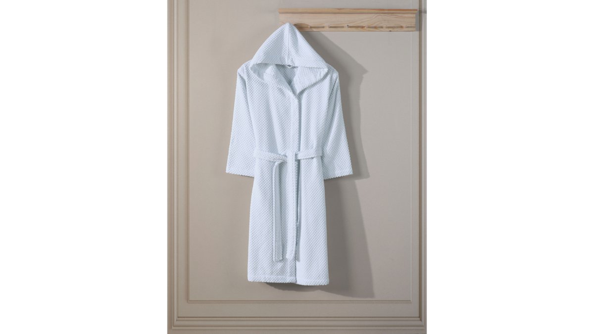 ხალათი - KENT JACQUARD HOODED BATHROBE WHITE S/M