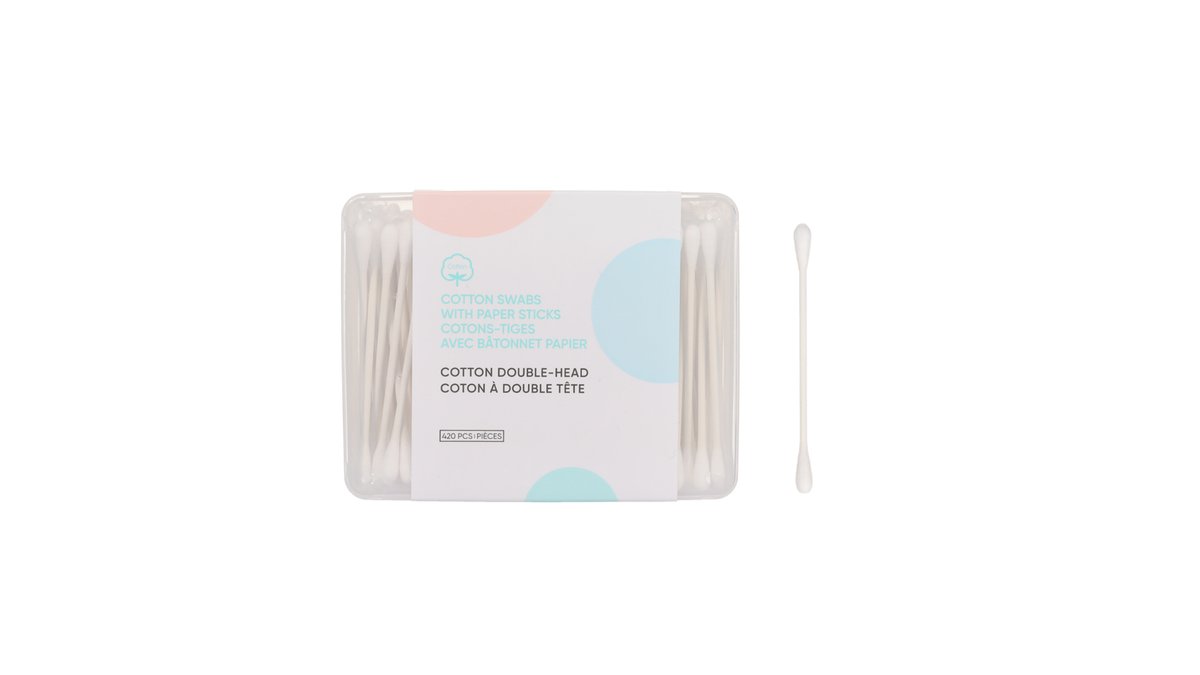 ბამბის ჩხირები/Premium Natural Cotton Swabs with Paper Sticks (Round Double Head, 420 pcs)