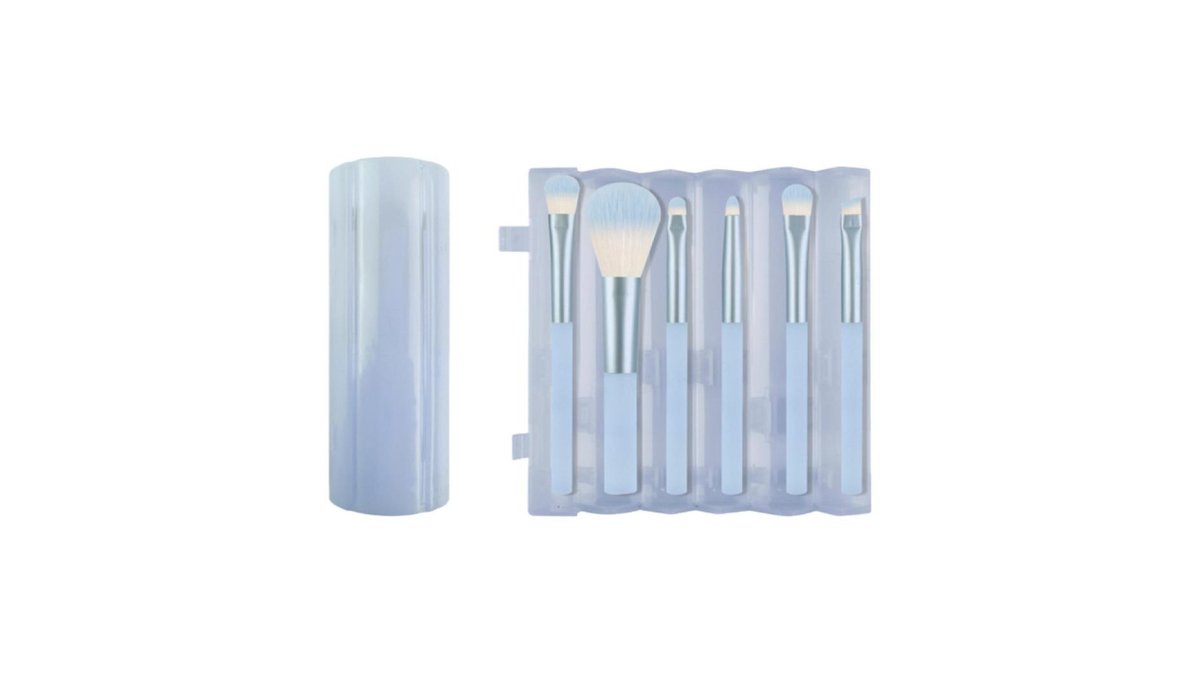 მაკიაჟის ფუნჯების ნაკრები/Portable Series Makeup Brush 6-Piece Set with Cylinder Holder (Baby Blue)