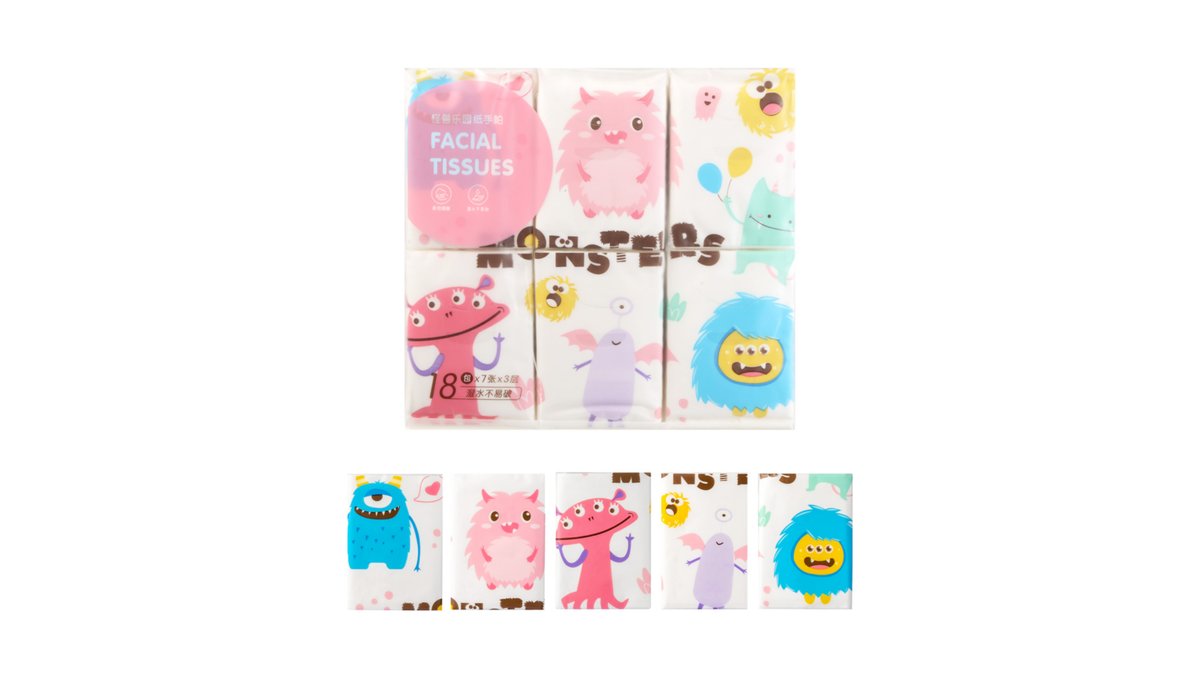 სახის ხელსახოცი/MINISO Monster Paradise Collection Scented Facial Tissues (18 Packs)