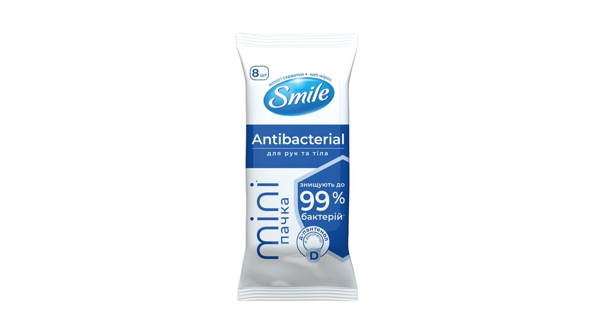 ანტიბაქტერიული სველი ხელსახოცი 8 ცალი 2405 სმაილი - Smile