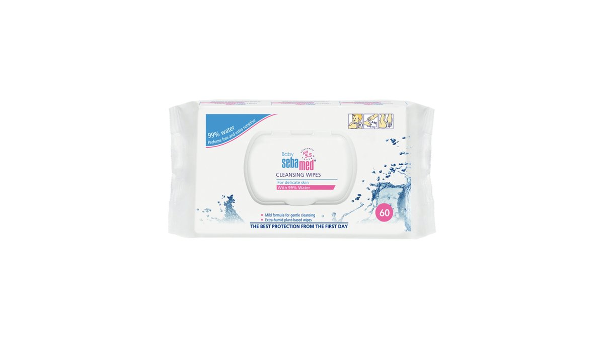 Sebamed - სებამედი საბავშვო სველი ხელსახოცი 99% წყალი 60 ცალი 0688