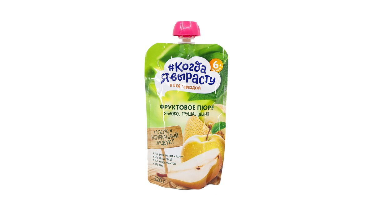 როცა გავიზრდები ხილფაფა ვაშლი, მანგო, ჟოლო უშაქრო 2032