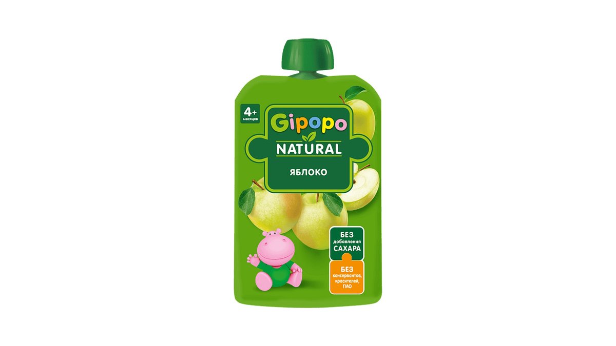 პაუჩი ხილფაფა ვაშლი 4 თვიდან 90 გ ჰიპოპო - Gipopo