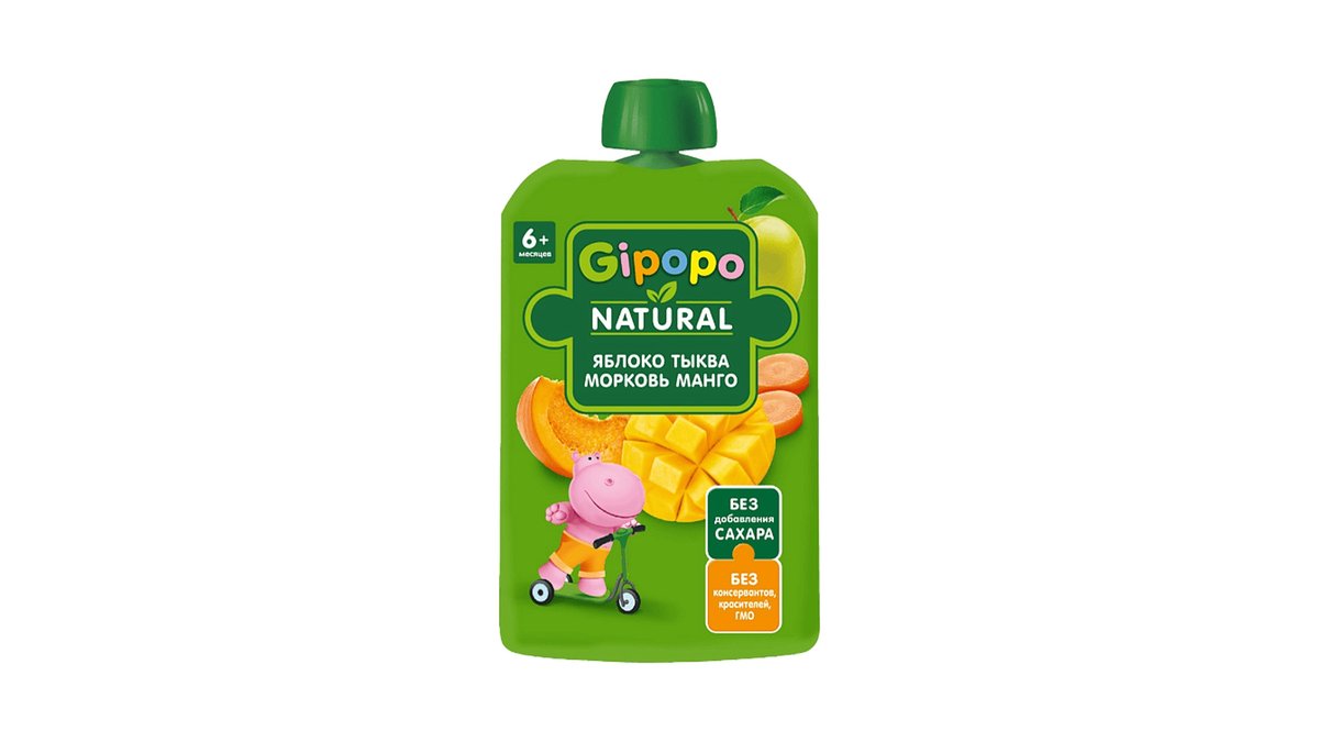 პაუჩი შერეული ვაშლი სტაფილო გოგრა და მანგო 6 თვიდან 90 გ ჰიპოპო - Gipopo