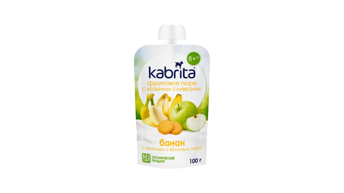 პიურე შერეული ბანანი ნამცხვარი და ვაშლი თხის რძით 8 თვიდან 100 გ 6888 კაბრიტა - Kabrita
