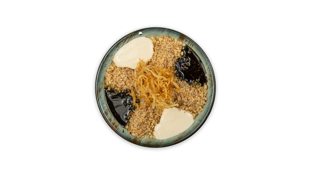 დაბლენდერებული ბადრიჯანი,მაწონი,ძირა ტაჰინით და ლიმნის წვენით