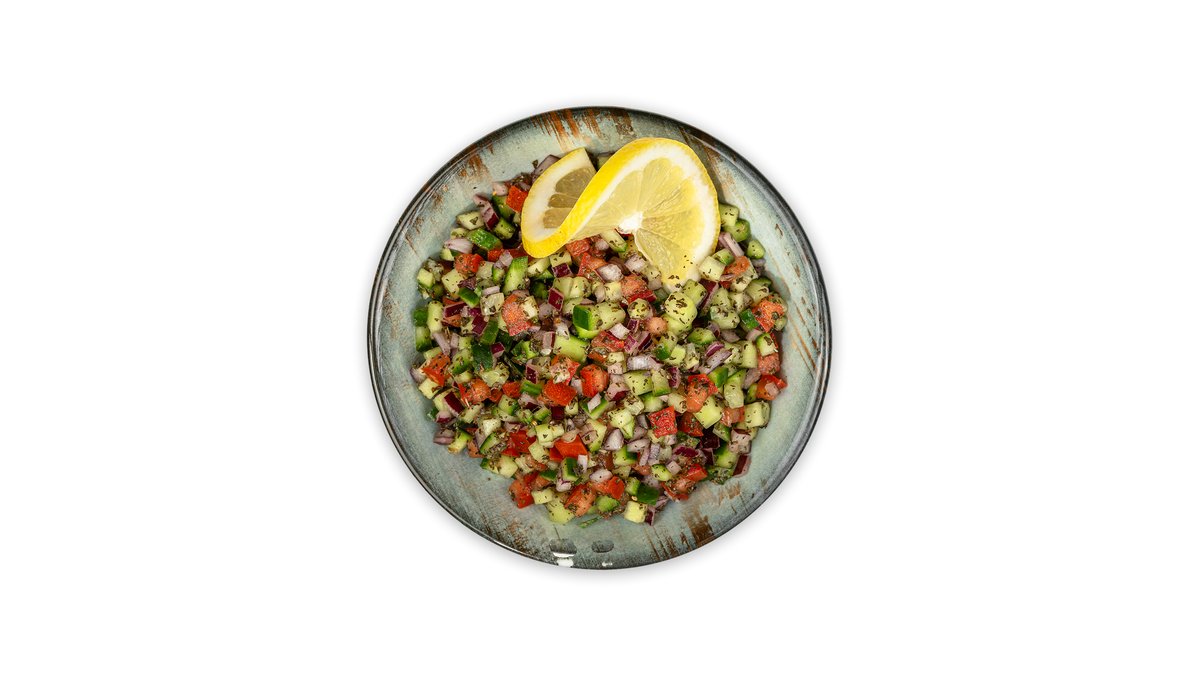 კიტრი,პომიდორი,ყველი ფეტა,ორეგანო,სალათის ფოთოლი,ზეითუნის ზეთი,ლიმნის წვენი