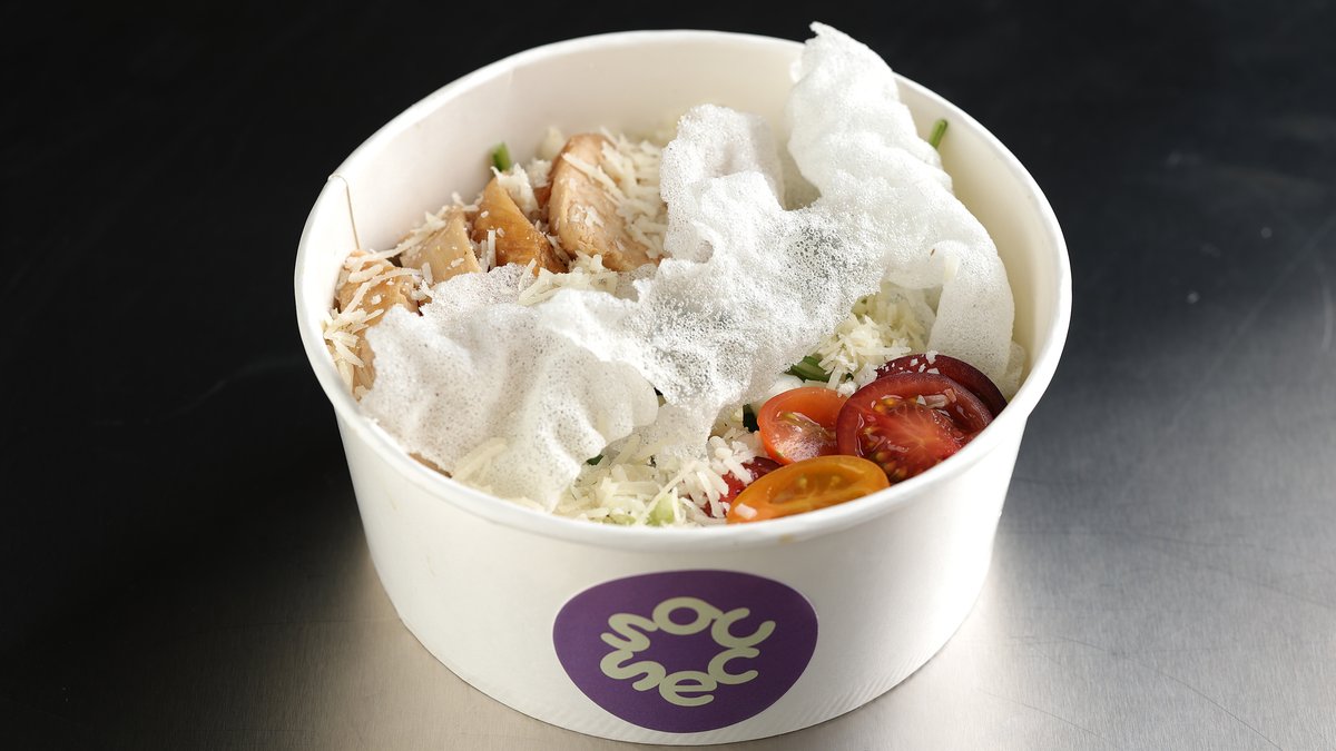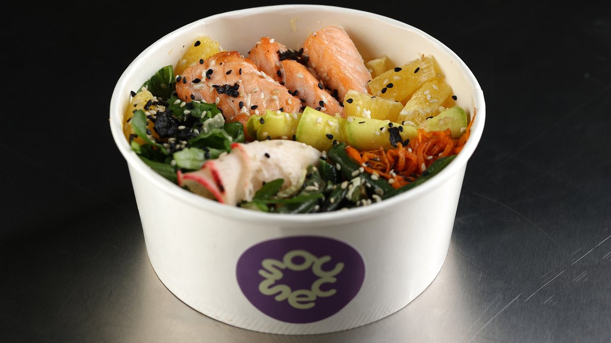 SALMON BOWL-Salmon,Quinoa,Marinated Zucchini,Chinese Cabbage,Green Beans,Arugula,Carrot,Orange,Sesame and Nori chips