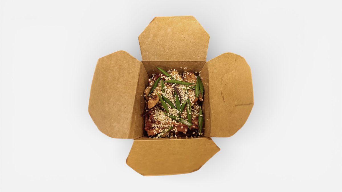 ატრია, ქათამი, ბულგარული, წითელი ხახვი, სტაფილო, ტერიაკის სოუსი, მწვანე ხახვი, სეზამის მარცვლები