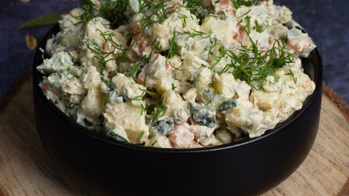კარტოფილი, ბარდა, სტაფილო, მწვანე ხახვი, კამა, მაიონეზი