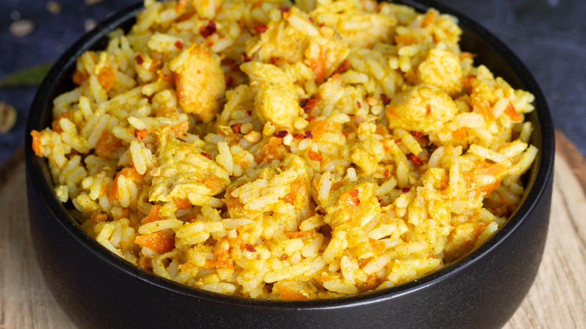 ბრინჯი, კრაბის ჩხირი, სიმინდის კონსერვი, მწვანილები, მაიონეზი