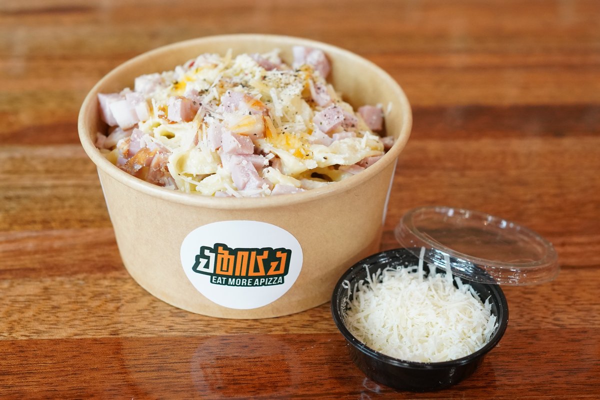 ნაღების თეთრი სოუსი, მოცარელა, ღუმელში გამომცხვარი დამანარიდებული ქათმის ხორცი, კარტოგილი ფრი, ბარბექიუ სოუსი, ტკბილ-ცხარე სოუსი, ხახვი, პარმეზანი, ზეითუნის ზეთი, ბაზილიკი