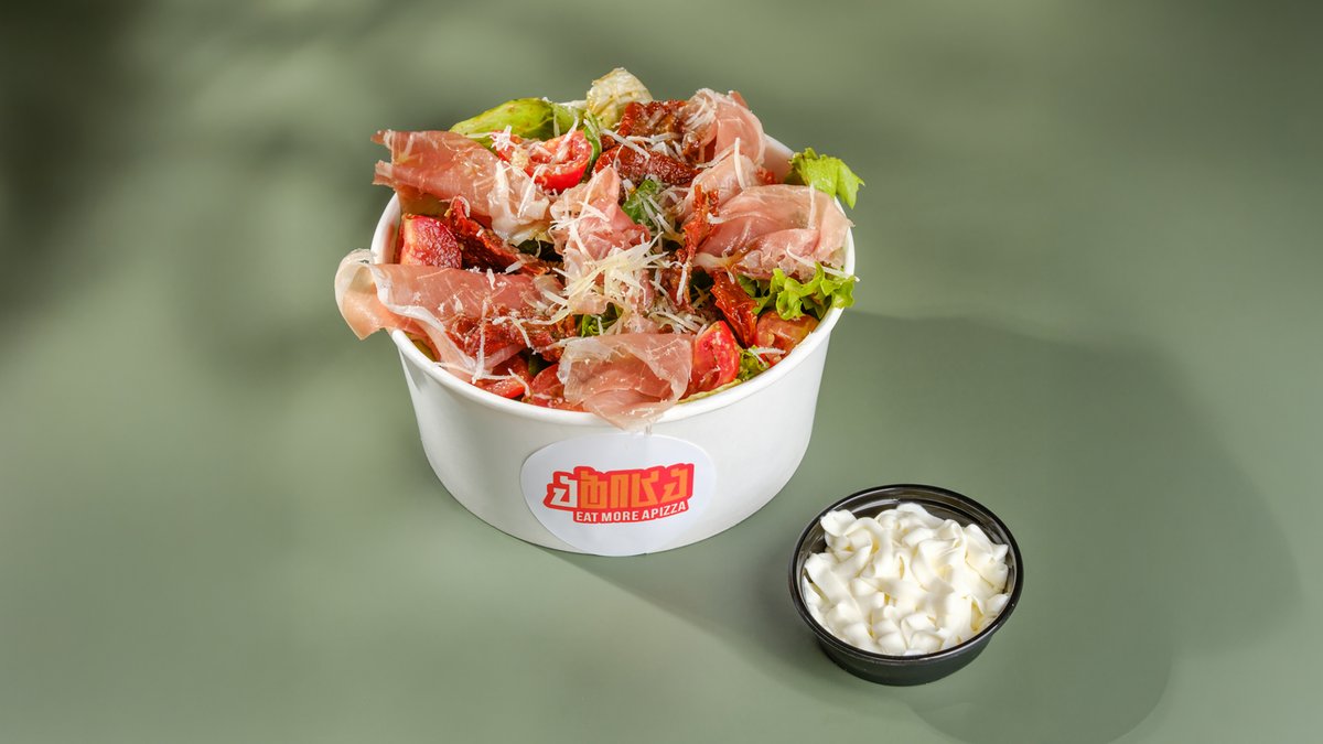 პომიდვრის სოუსი, მოცარელა, იტალიური სალამი, ცხარე წიწაკები, ხახვი, ზეითუნის ზეთი, ტკბილ-ცხარე თაფლი, პარმეზანი, ბაზილიკი