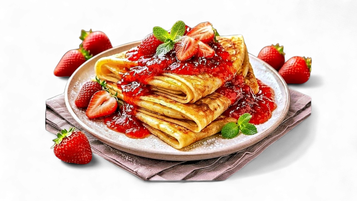 Crepes with strawberry jam