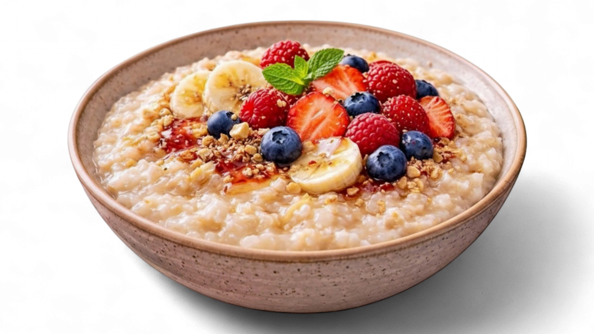 Creamy oatmeal slow-cooked to a smooth, comforting texture. Served warm with fresh fruit, nuts, and a drizzle of honey for a wholesome and nourishing breakfast.