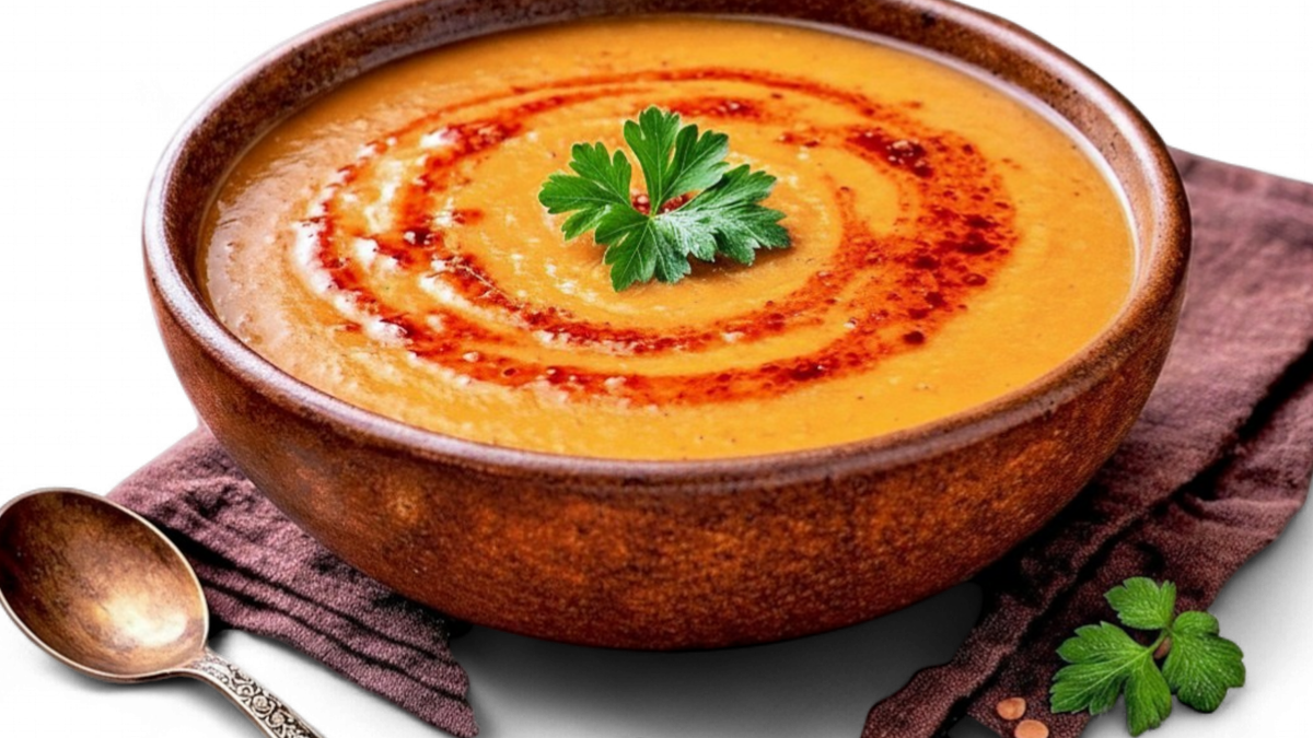Traditional Turkish red lentil soup, slow-cooked until smooth and creamy with onions, carrots, and aromatic spices. Finished with a touch of olive oil and lemon for a warm, comforting flavor.