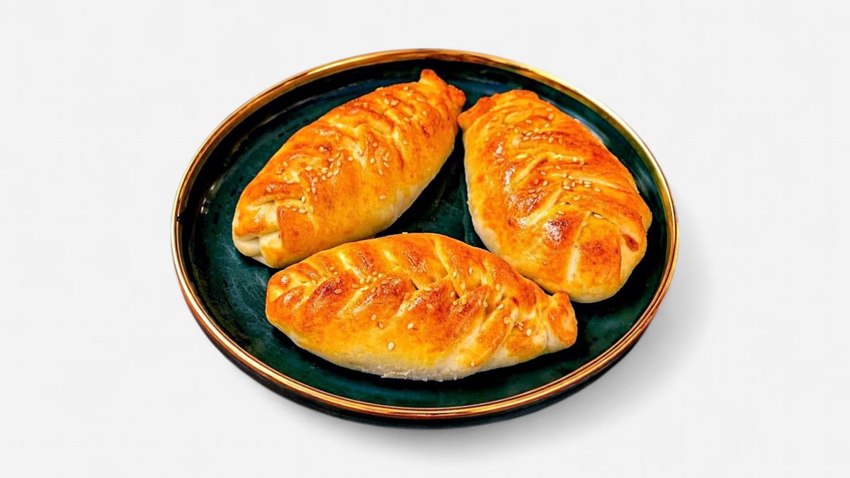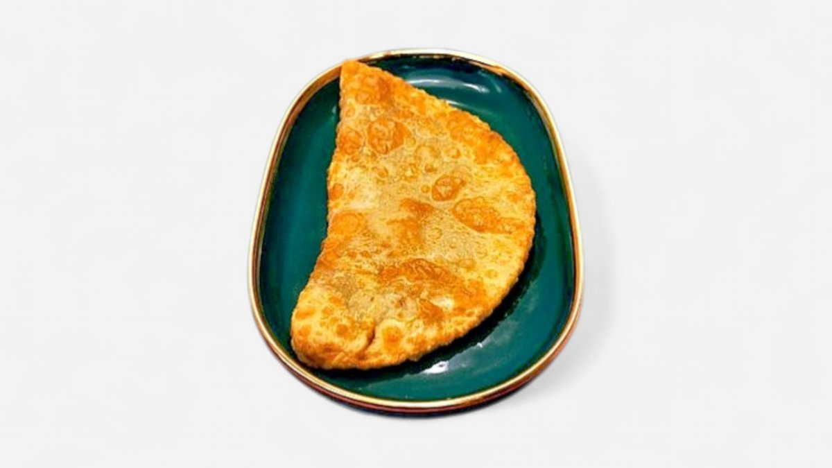 A perfectly crispy cheburek with a rich, juicy meat filling and aromatic spices. Fried to golden perfection for an irresistible crunch.