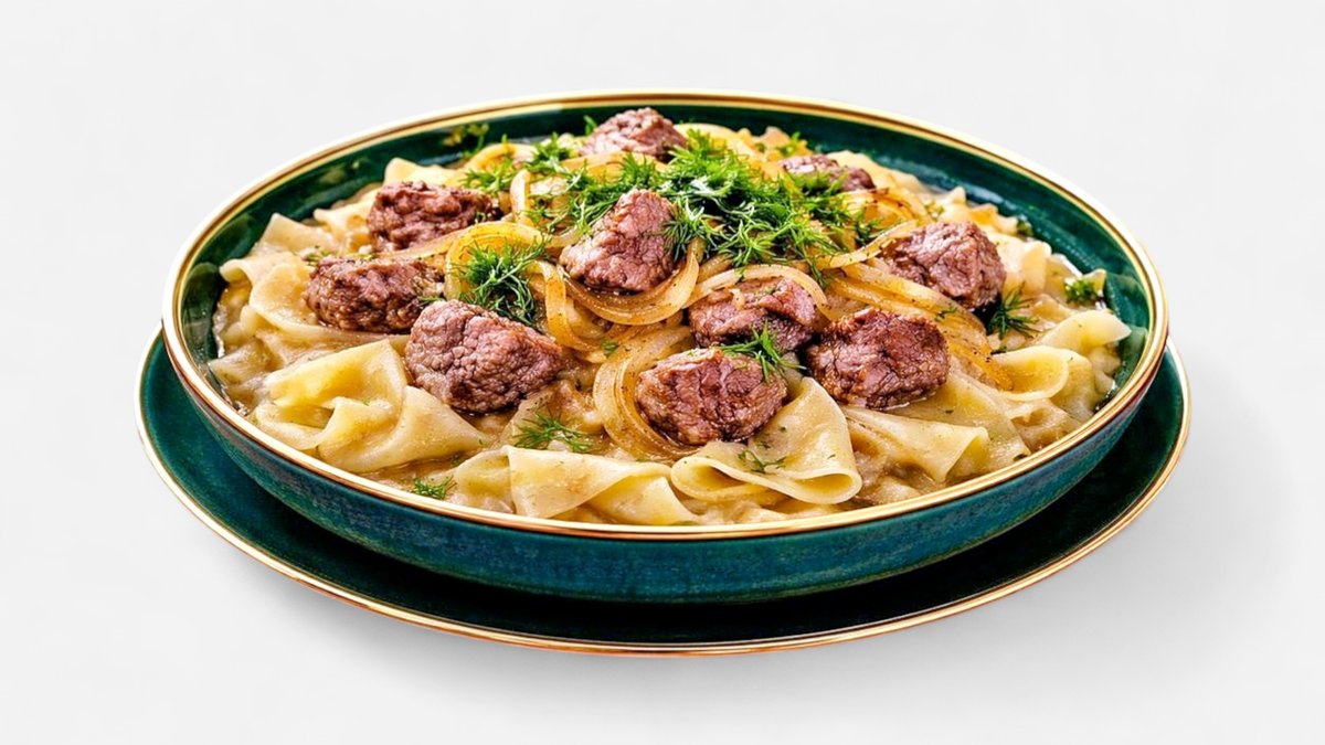 Traditional Central Asian dish made with tender boiled meat served over wide handmade noodles and topped with savory onion sauce. Rich, hearty, and deeply comforting — a classic home-style meal meant to be shared.