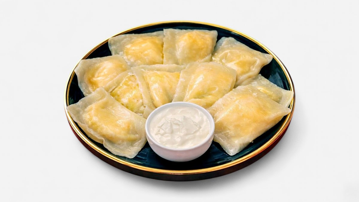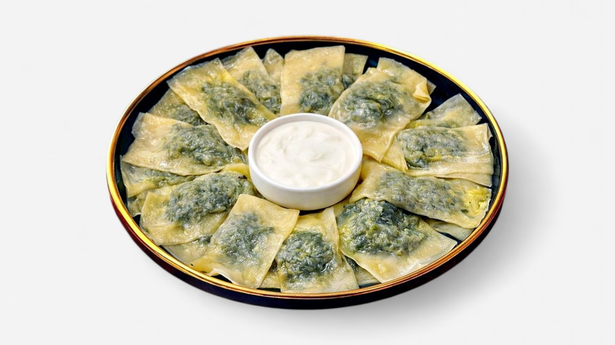 Handmade dumplings filled with a delicate spinach filling and gentle spices. Served hot with sour cream or butter for a light, comforting, and flavorful dish.