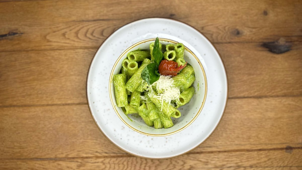 პასტა,ზეითუნის ზეთი,პარმეზანი,სეზამის მარცვლები,ლიმონი Pasta, olive oil, parmesan, basil, sesame seeds, lemon.