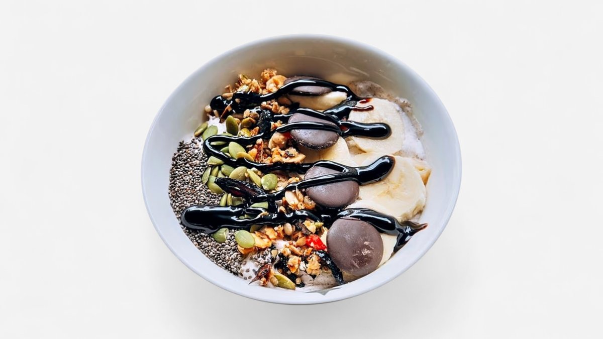 ბანანი, გრანოლა, შოკოლადი, ჩია, გოგრის თესლი
