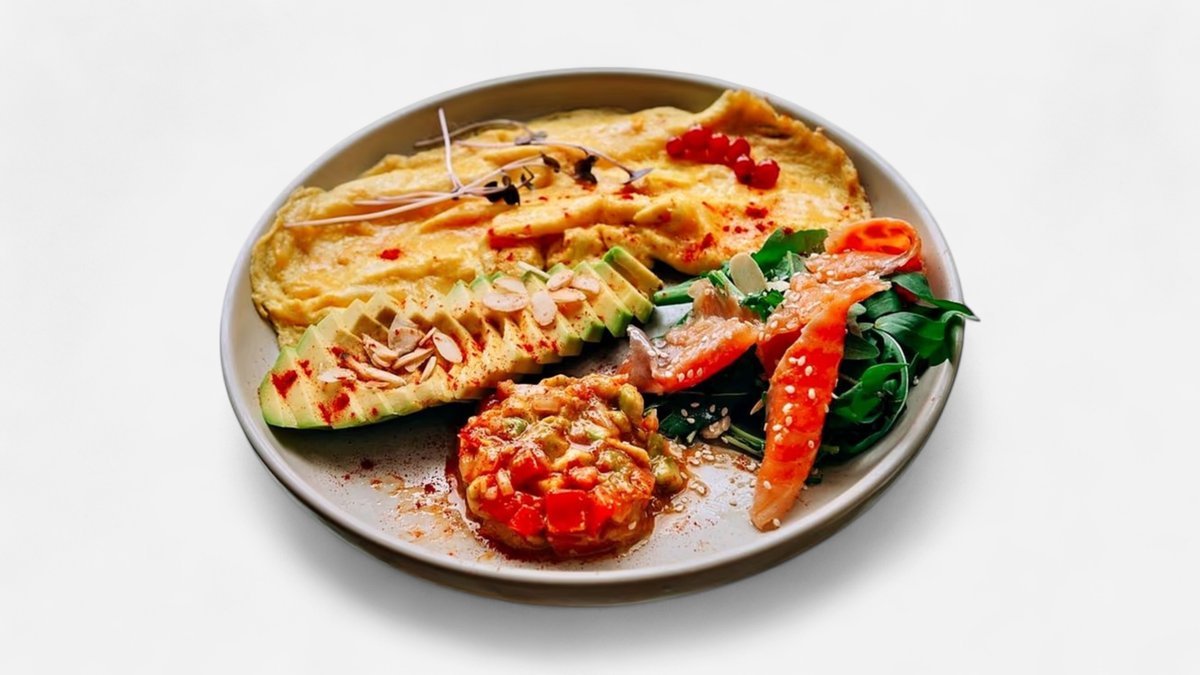 ომლეტი ორაგულით და ავოკადოთი