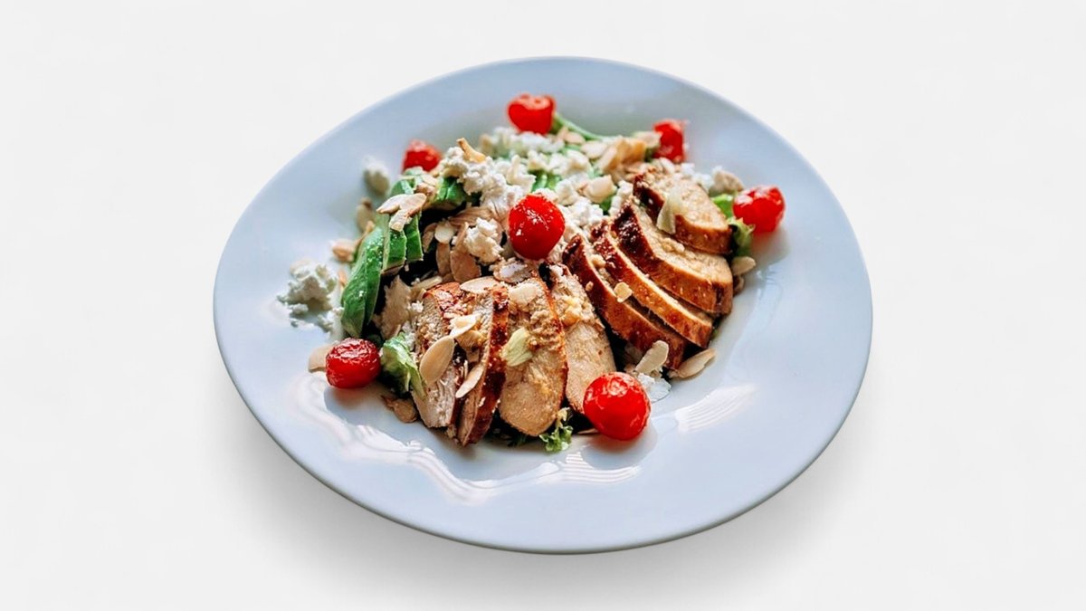 ქათმის სალათი ალუბლის ჩირით და ფორთოხლის დრესინგით
