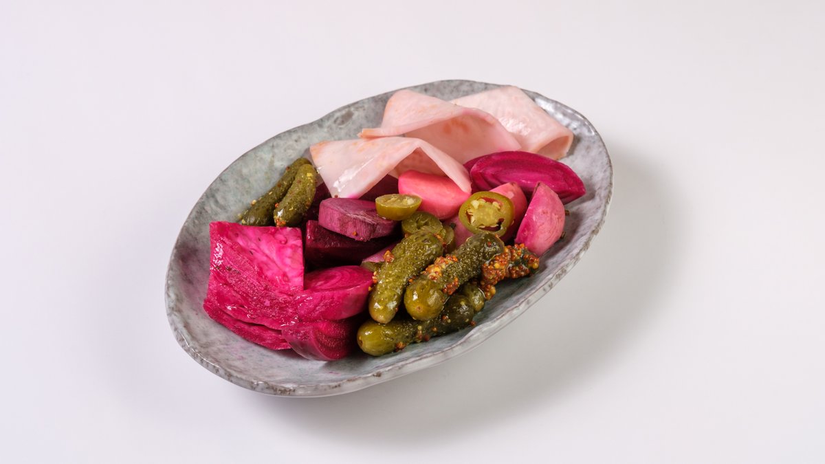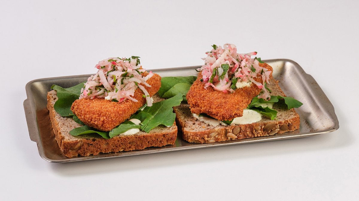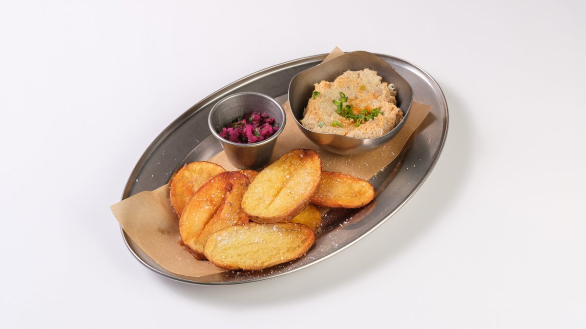 ხახვის მარინადი, ტარტარის დრესინგი, მდოგვი, ჭვავის პური