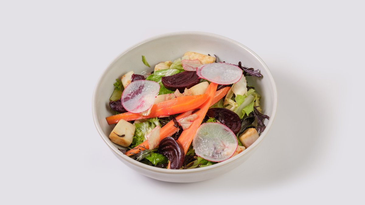 დამარინადებული ნიახური, სტაფილო, ჭარხალი, თაფლის და მდოგვის დრესინგი