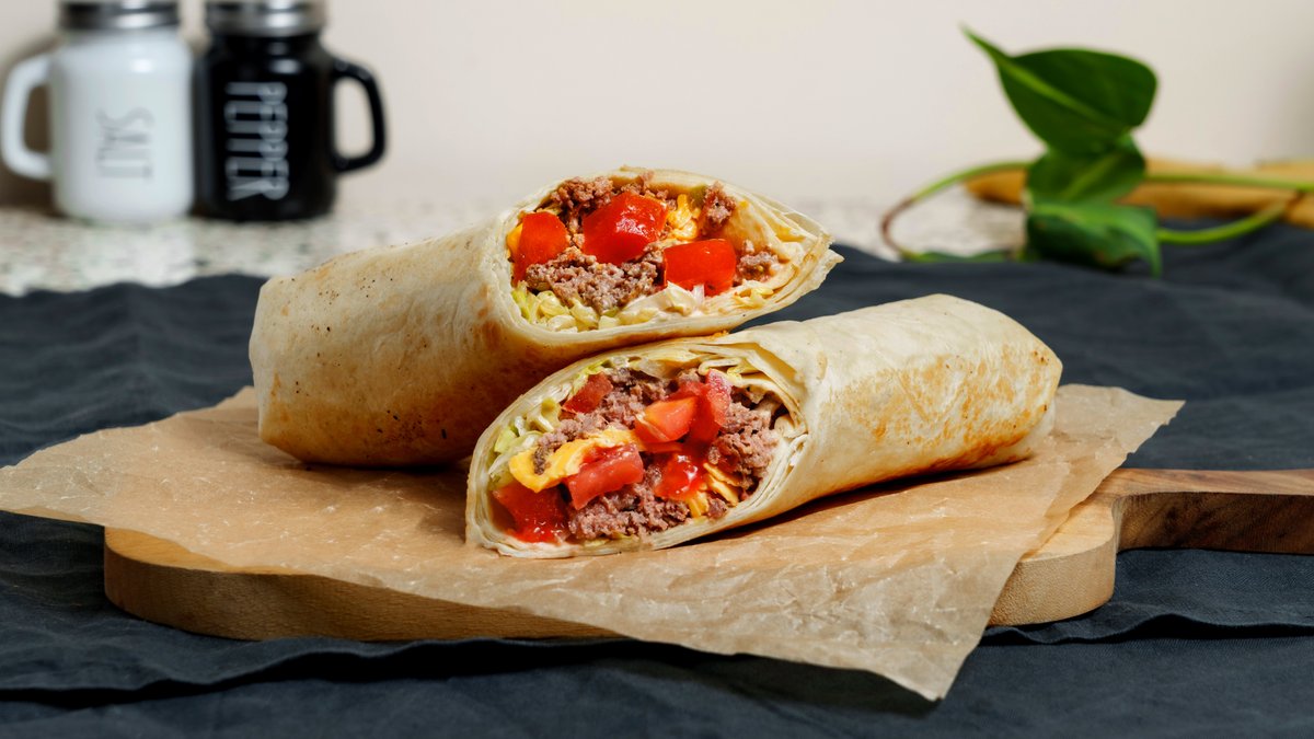 ფუნთუშა, საქონლის ხორცი, მექსიკური სალსა, ყველი ჩედარი, საფირმო სოუსი, აისბერგი.