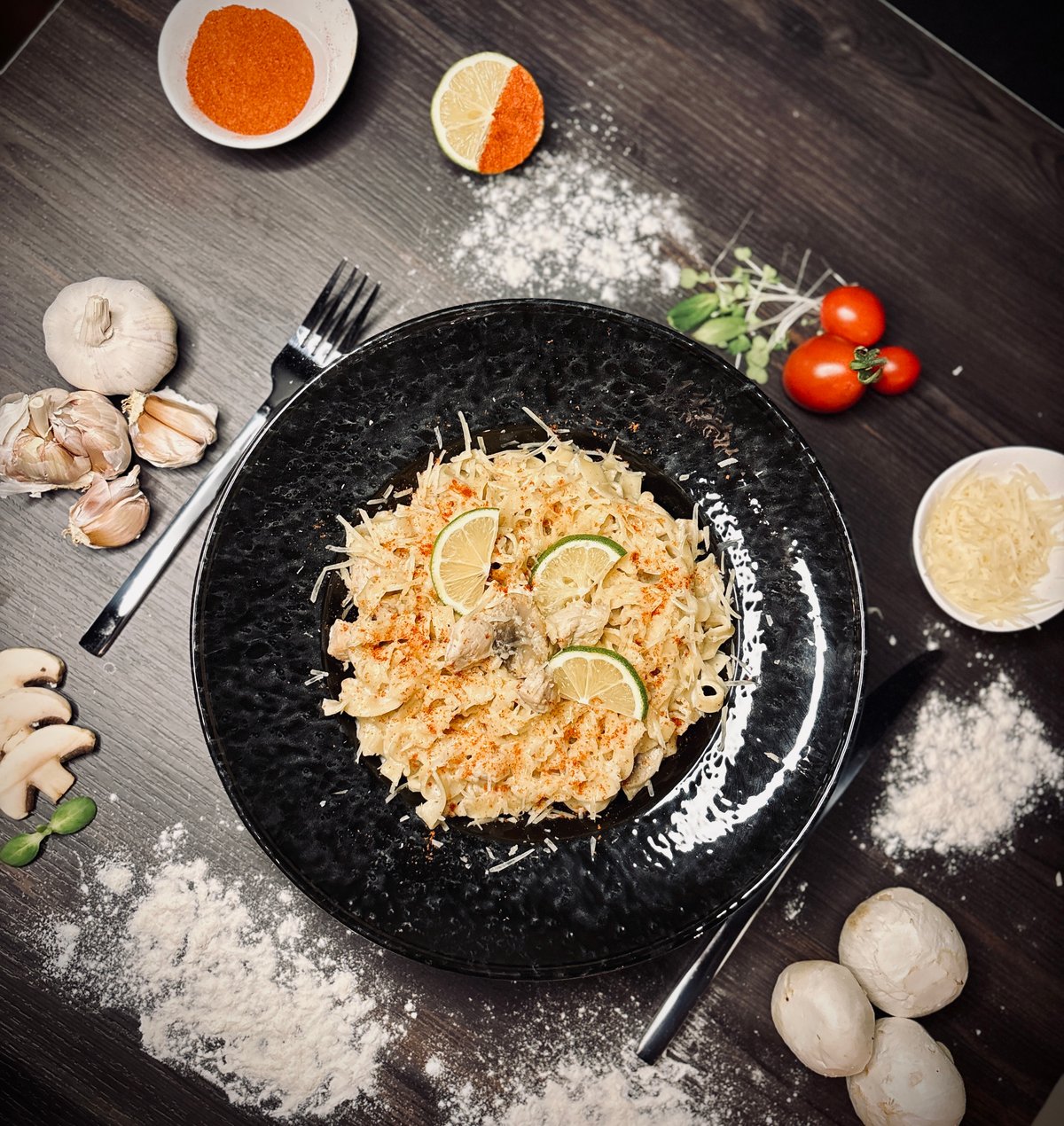6 ნაჭერი ქათმის ფილე, სოკო, ბარბექიუს, მოცარელა, სოუსი პიცის ცომი,მარინარა,
