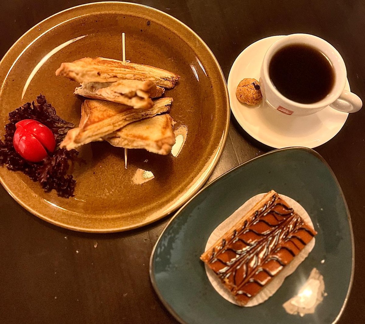 ქათმის ტოსტი დესერტი ირისი ყავა