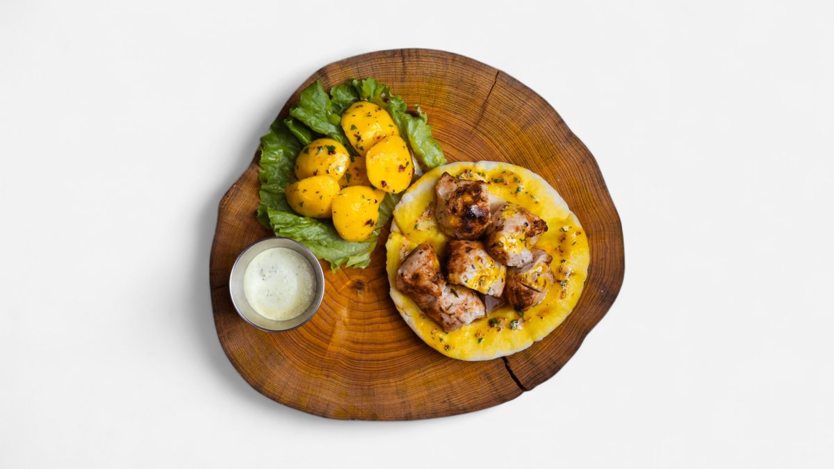 Chicken Lula in shots bread served with dzadziki sauce