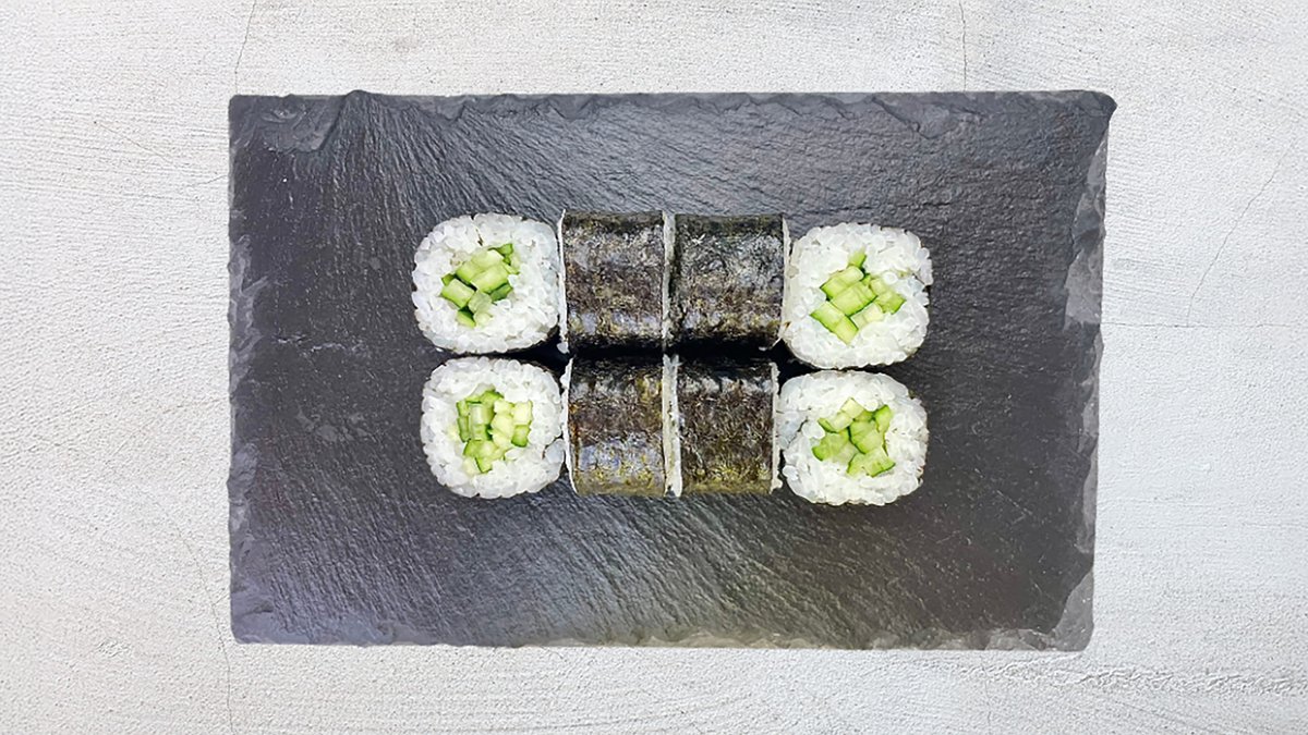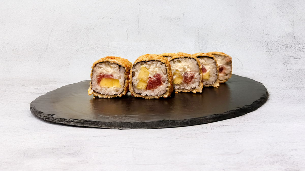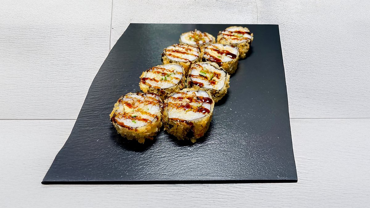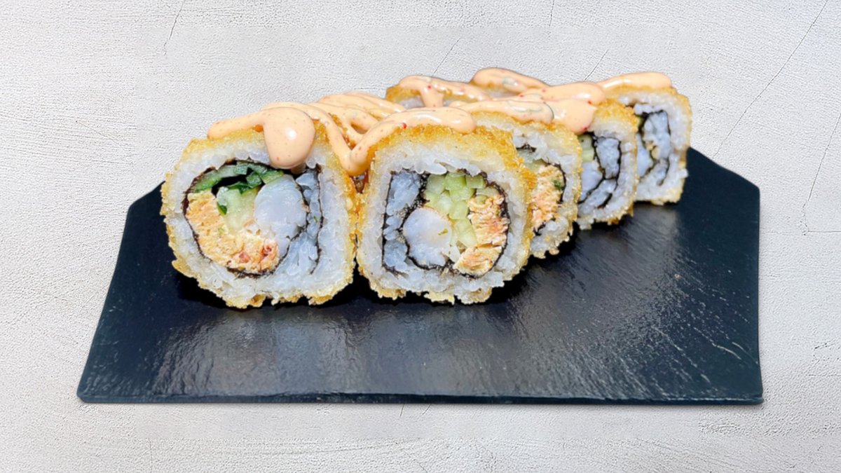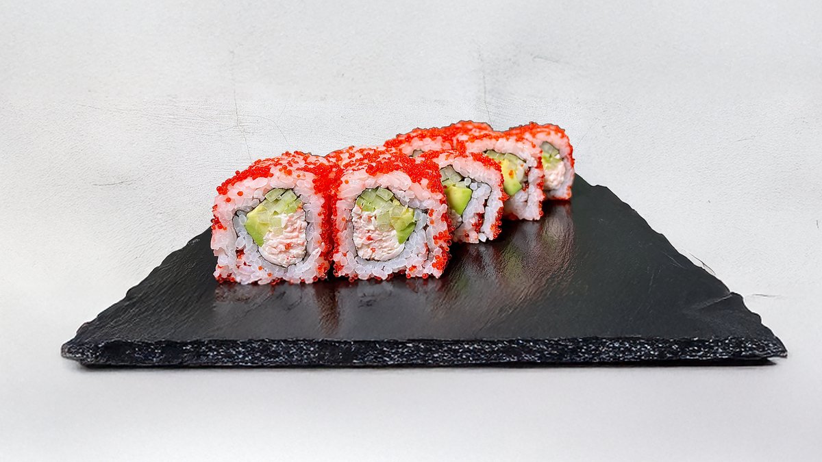 კრევეტი, იაპონური ომლეტი, ავოკადო, კიტრი, ჩუკა, სოიოს სოუსი, სიმინდი, სეზამი, ტკბილ-ცხარე სოუსი, ქინძი, ბრინჯი