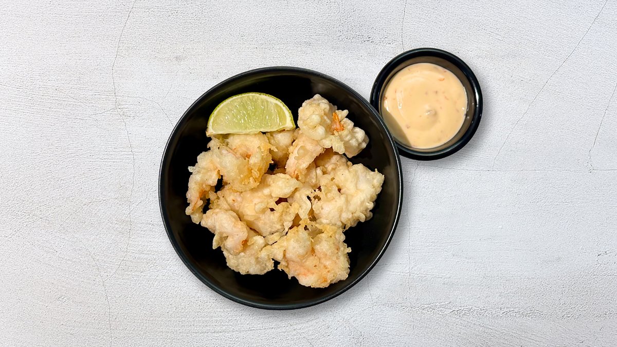 კრევეტები კლიარში , ტკბილი ჩილის სოუსი და ლაიმი