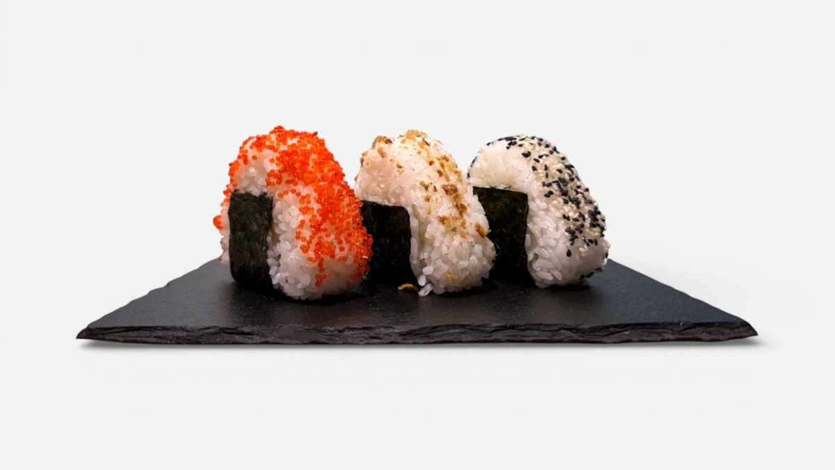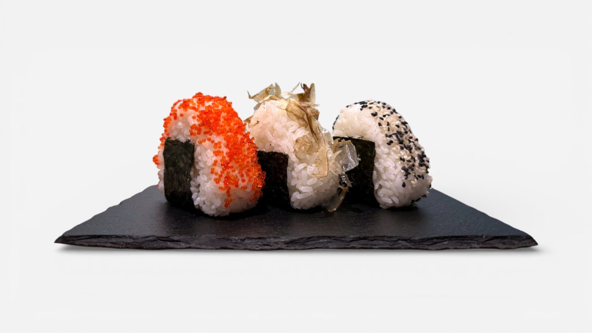 ონიგირი ქათმით, კრევეტებით და თოვლის კრაბით