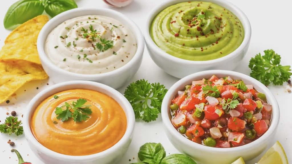 გაუდა , ჩედარი სოკო წითელი კომბოსტო პომიდვრის სალსა მწვანე სოუსი