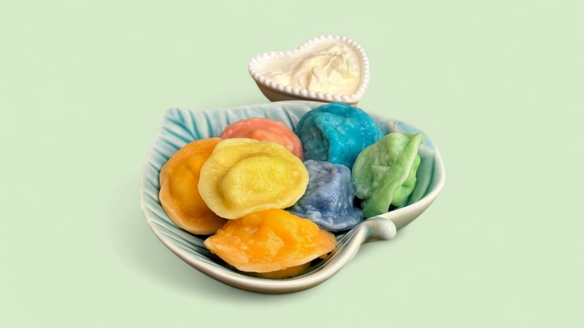 Savor 4 fluffy shrink, made from rice flour & topped with sour cream mousse, berry coulis, nuts