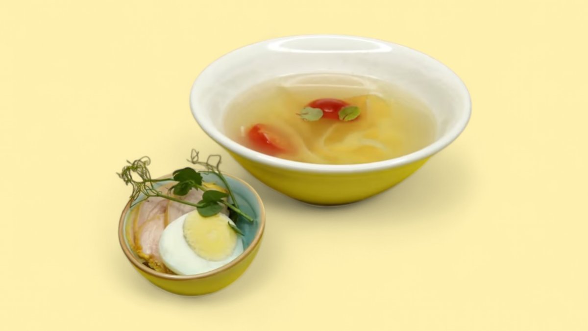 Enjoy our Chicken & Fettuccini Soup! Crafted with chicken stock, tender breast meat, 1/2 boiled egg and fettuccini. Only 283 ccal.