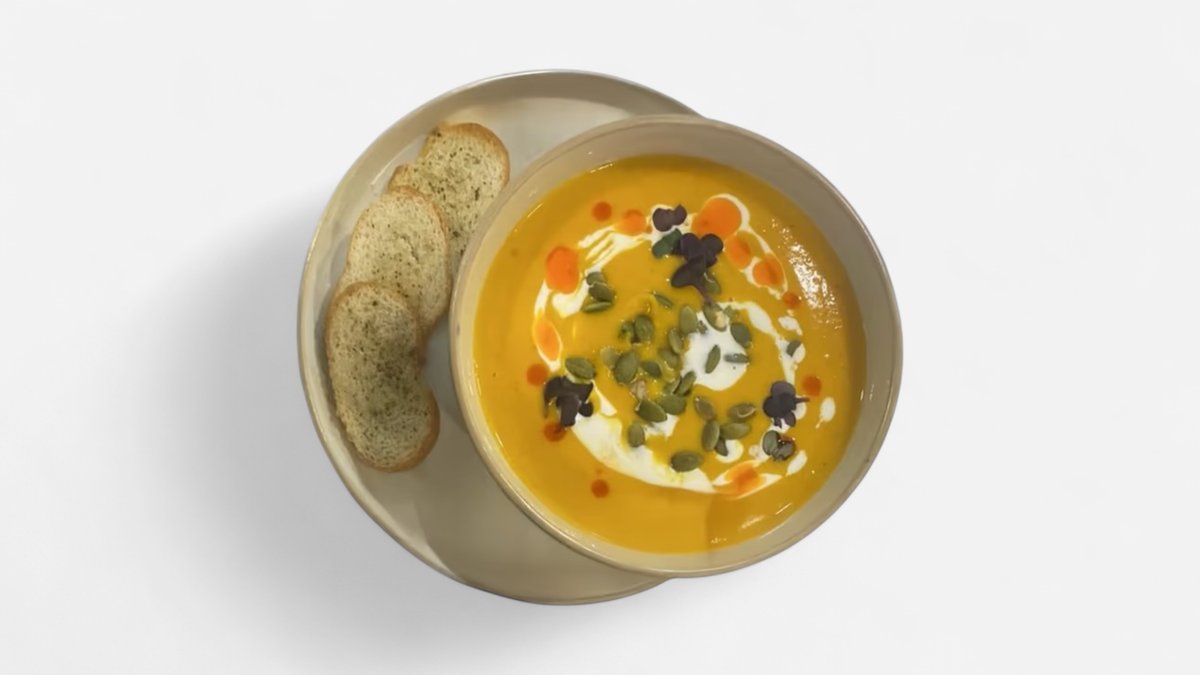Pumpkin, cream, carrot, onion, Svaneti salt
