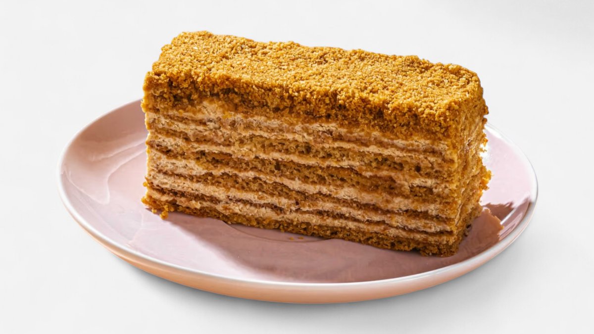 არაჟნის კრემისა და თაფლის ბისკვიტის ურბილესი ფენები, რომლებიც კლასიკად იქცა. The Most Tender Layers Of Sour Cream And Honey Biscuits, Which Have Become A Classic.