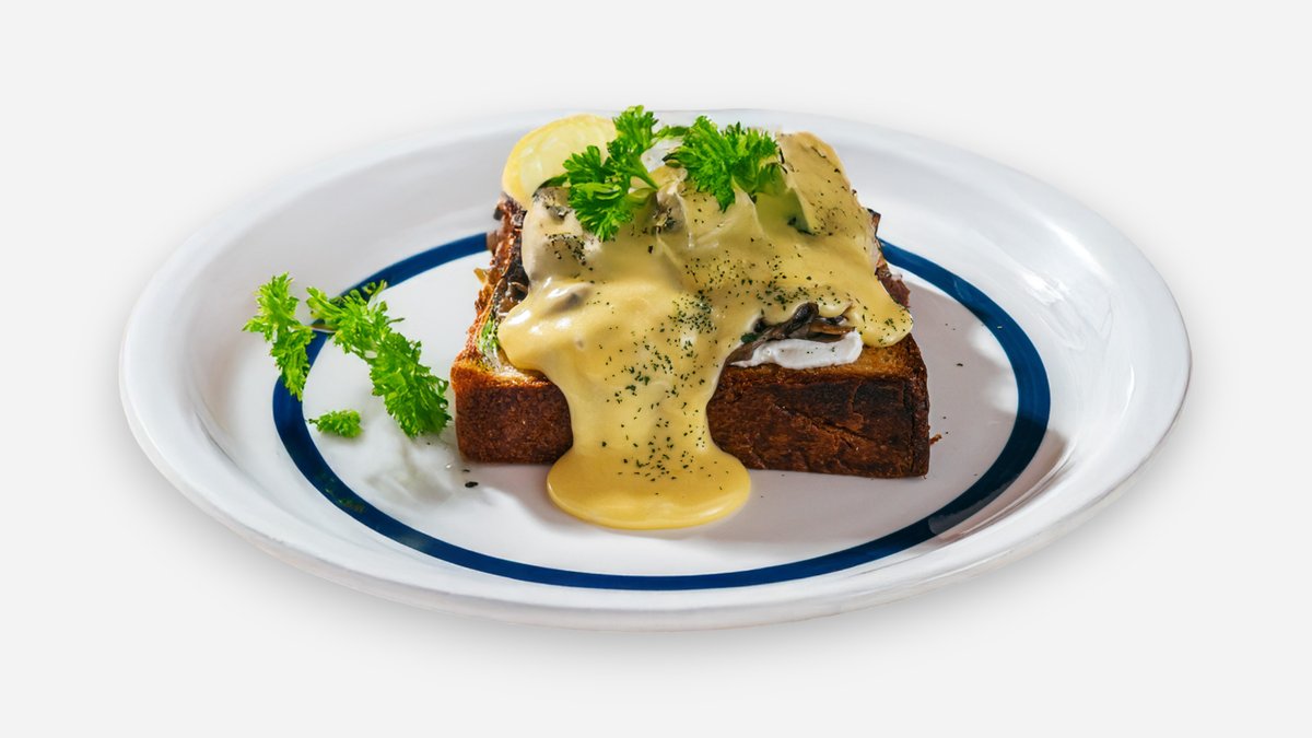 Brioche, mushrooms, cream cheese, poached eggs, hollandaise sauce