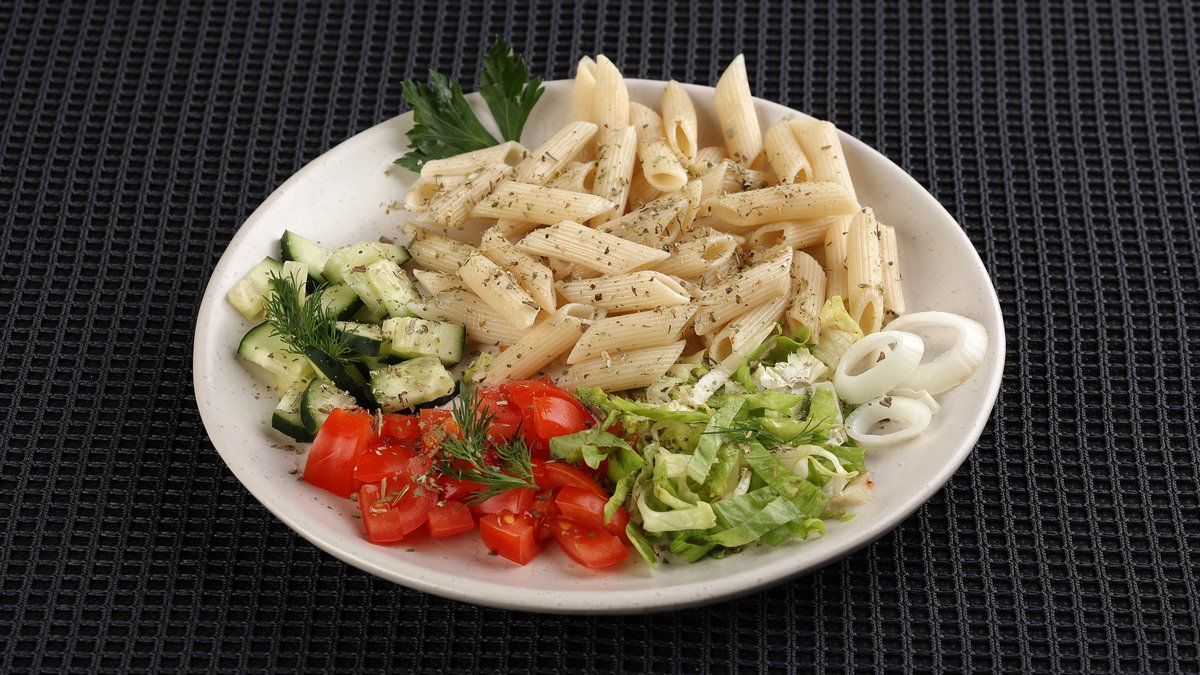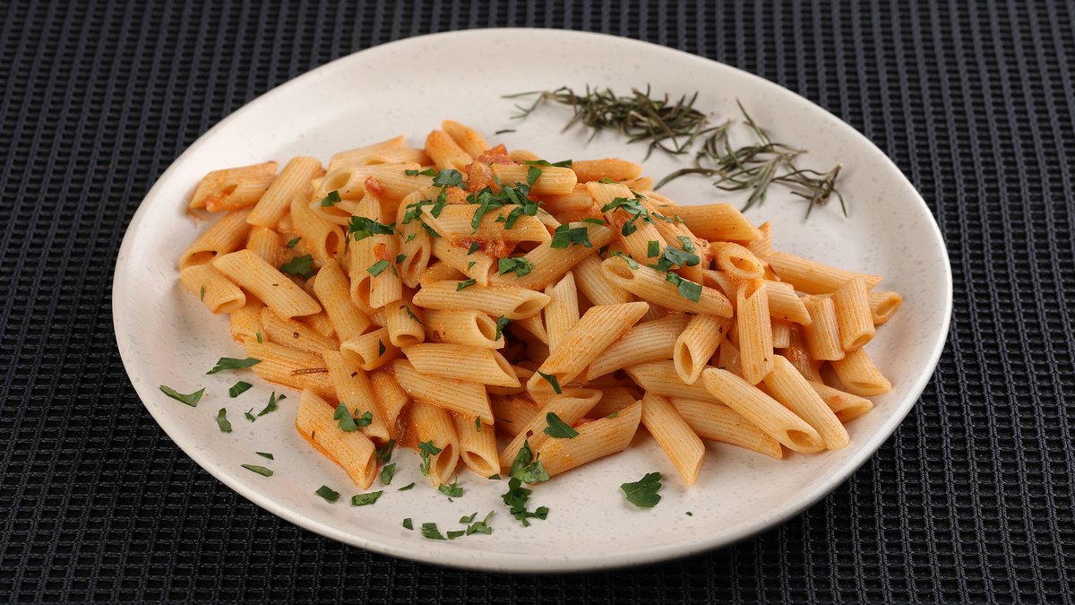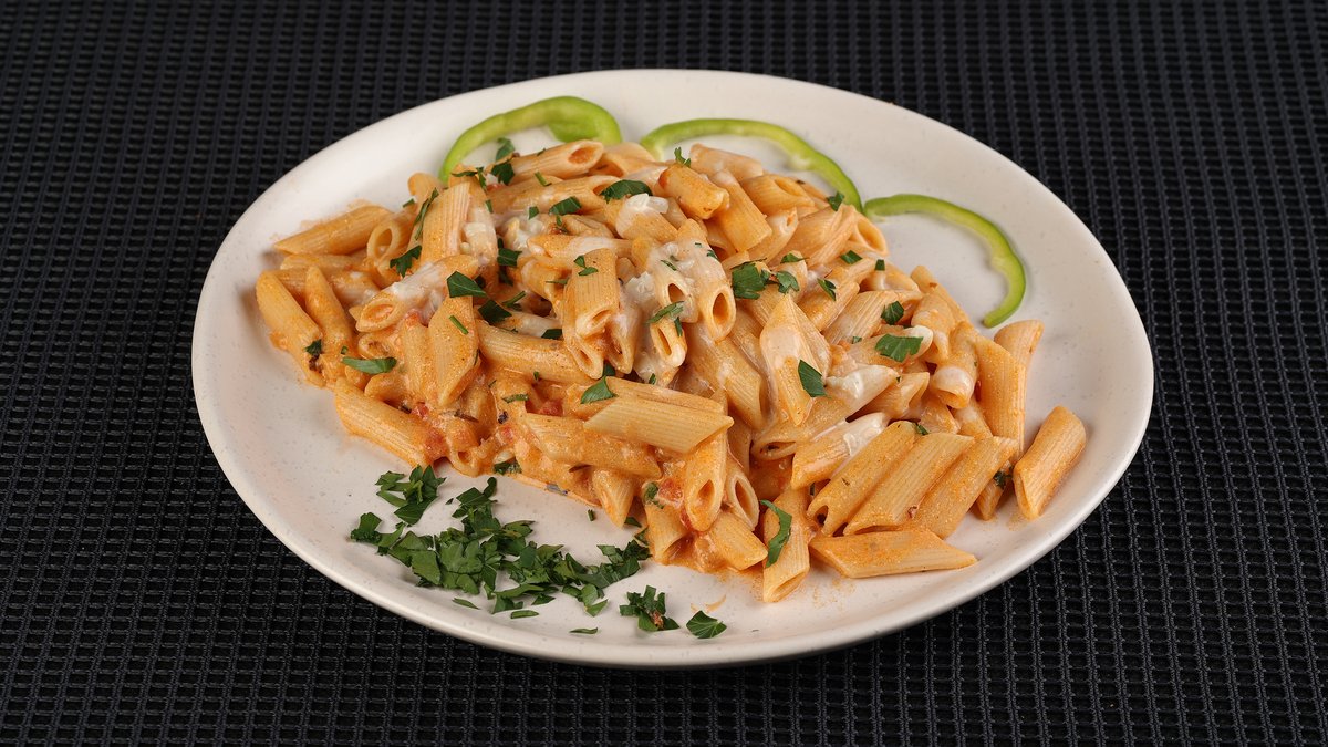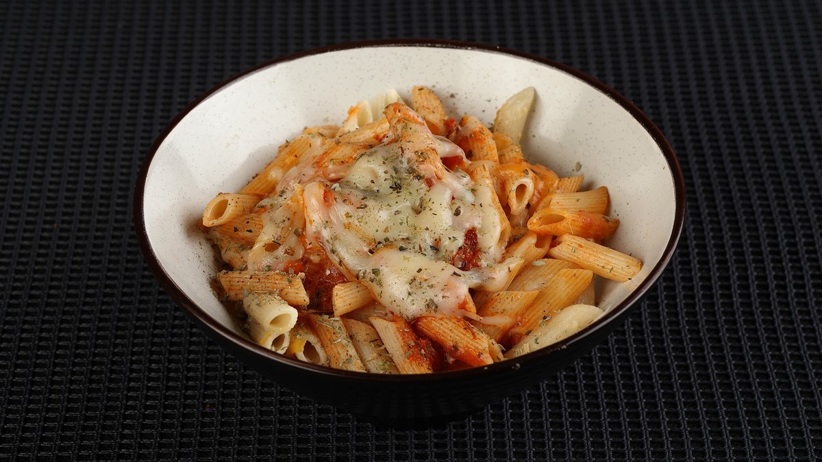 Pasta, onion, garlic, tomato sauce, creamy cheese