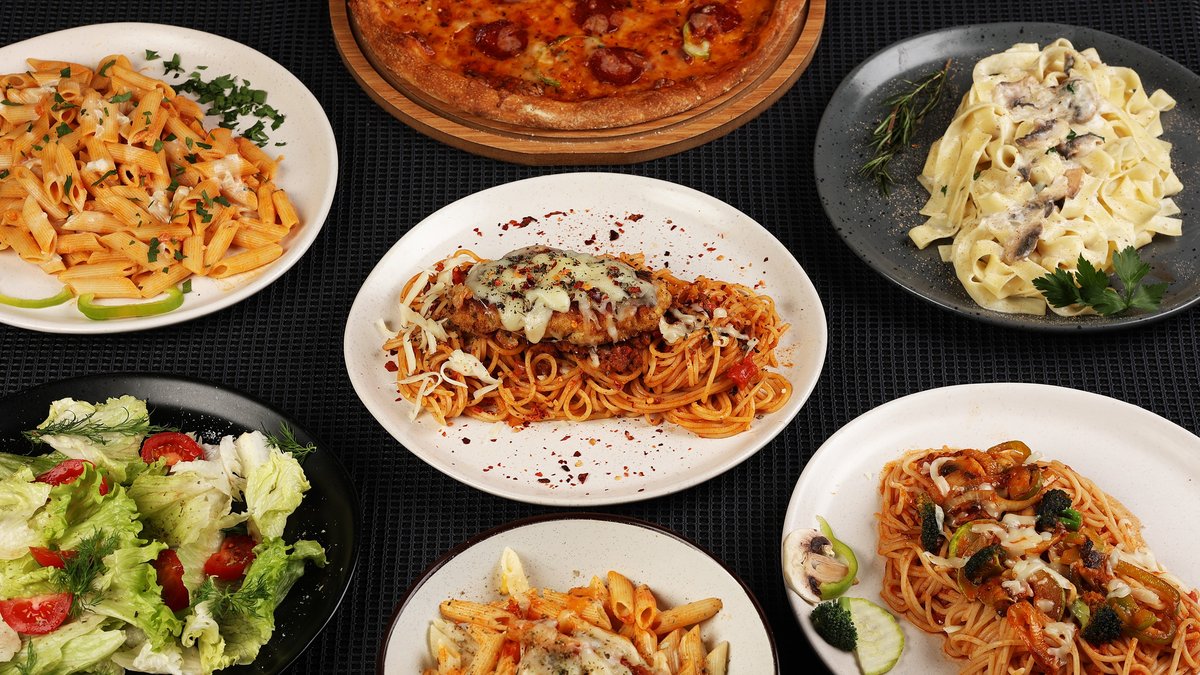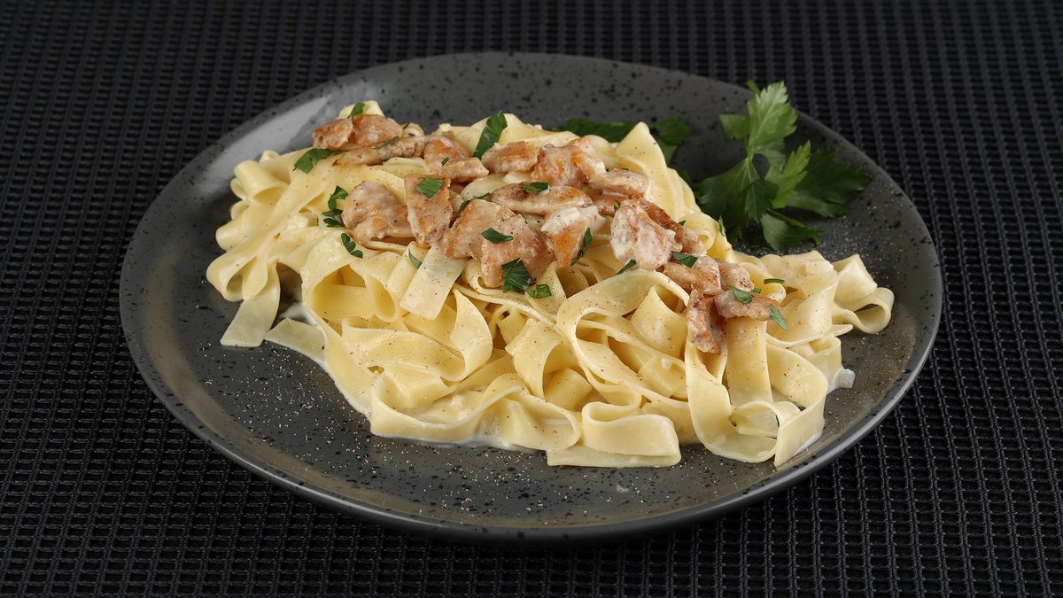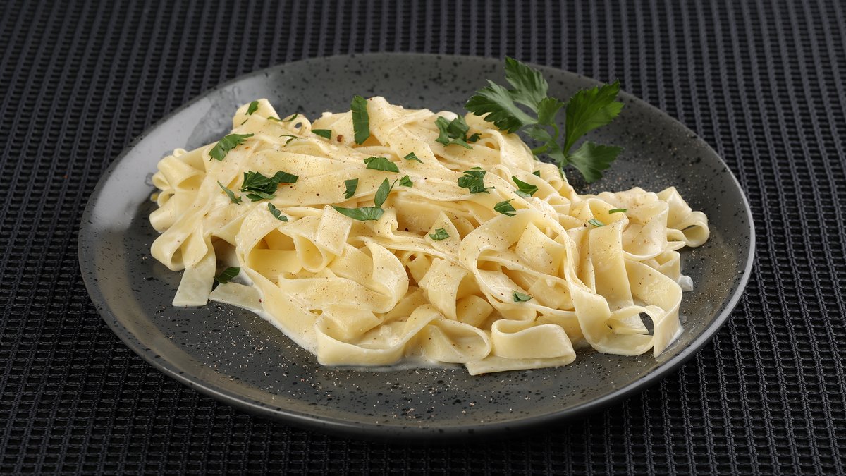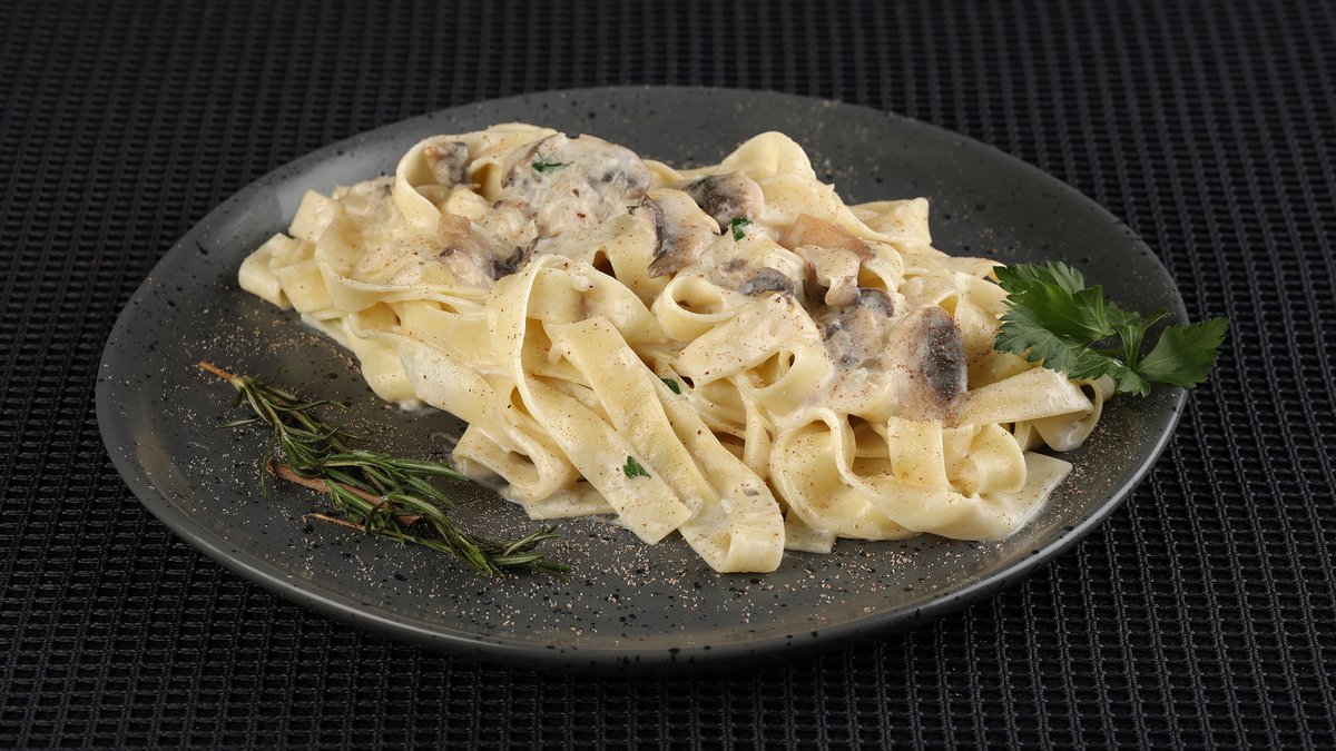 Pasta, onion, garlic, tomato sauce, creamy cheese