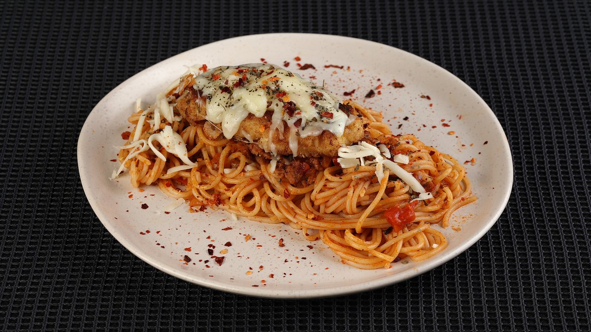 Onion, garlic, tomato sauce, chicken escalope, mozzarella cheese